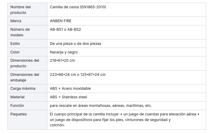 La camilla está diseñada para una amplia gama de situaciones de emergencia especiales, como en zonas montañosas, aéreas y